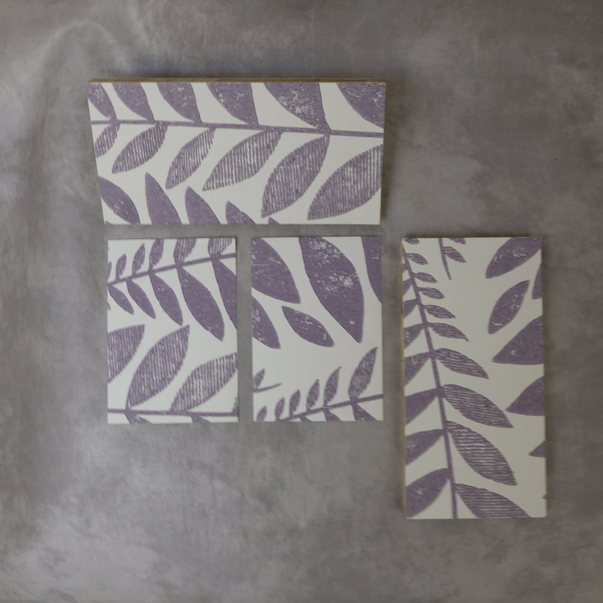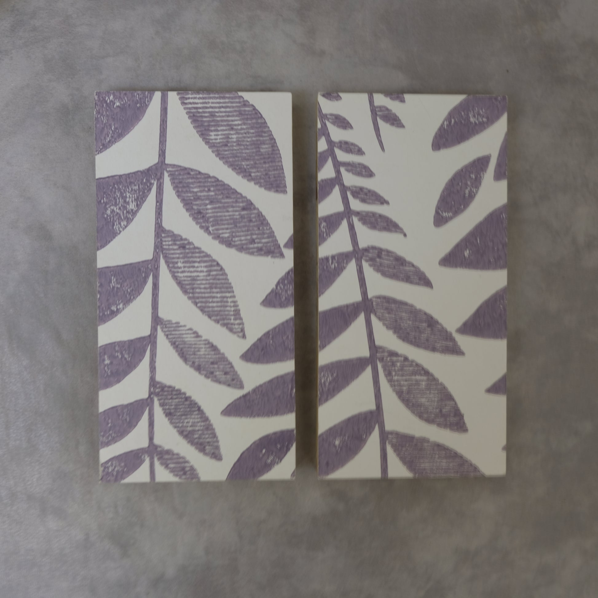 Die beiden Tapetenbilder bestehen aus robusten Holzplatten, die sowohl im Hoch- als auch im Querformat aufgehängt oder aufgestellt werden können. Ihre lilafarbenen Blattmotive erzeugen eine elegante, beruhigende und zugleich natürliche Atmosphäre. Die harmonische Farbgebung und das edle Material machen das Set zu einem attraktiven Blickfang für Tisch, Regal oder Wand.